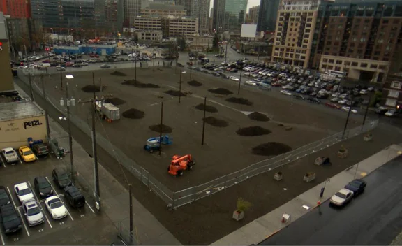 The garden design for All-Rise is taken from a series of painted pattern studies drawn from my research of historic and modern international global trade. The geometric edges of the design will soften and evolve as it grows just as the systems of trade metamorphose over time. The garden links my research of Northeast labor and trade in the Industrial Era with the contemporary global trade of the Northwest. The title comes from the number of miles between Seattle and New York City.