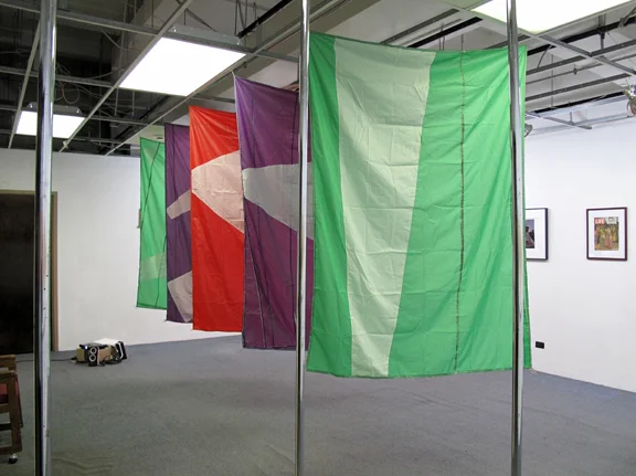 Banners and test paintings for the Art & Law Residency exhibition at the Sculpture Center.