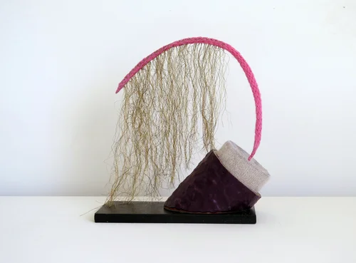 Fabric, thread, papier mache, paint, ceramic