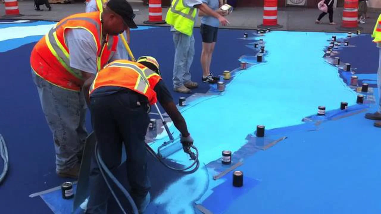 The five block, 50,000 square foot painting covering the surface of Broadway from 47th to 42nd Streets in Times Square will be installed in June and remain for 18 months.
